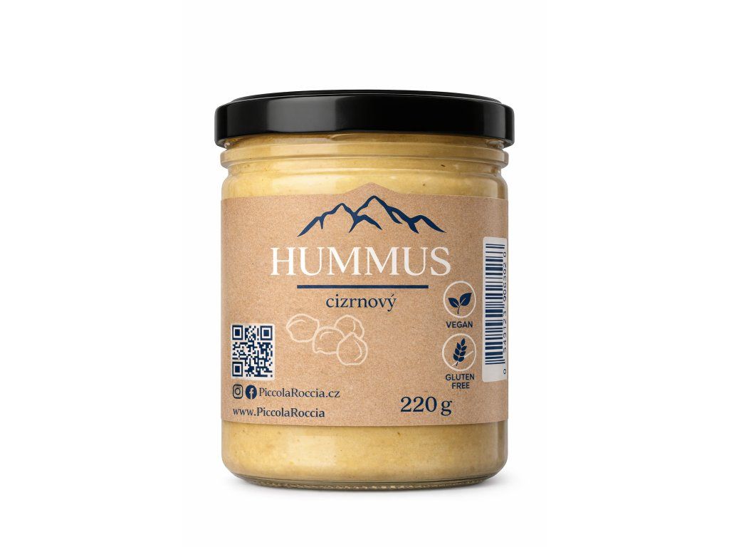 Složení Hummus Klasik: Cizrna, tahini (sezamová pasta), olivový olej, konfitovaný česnek, citrón, římský kmín, sladká paprika, sezamový olej, sůl.